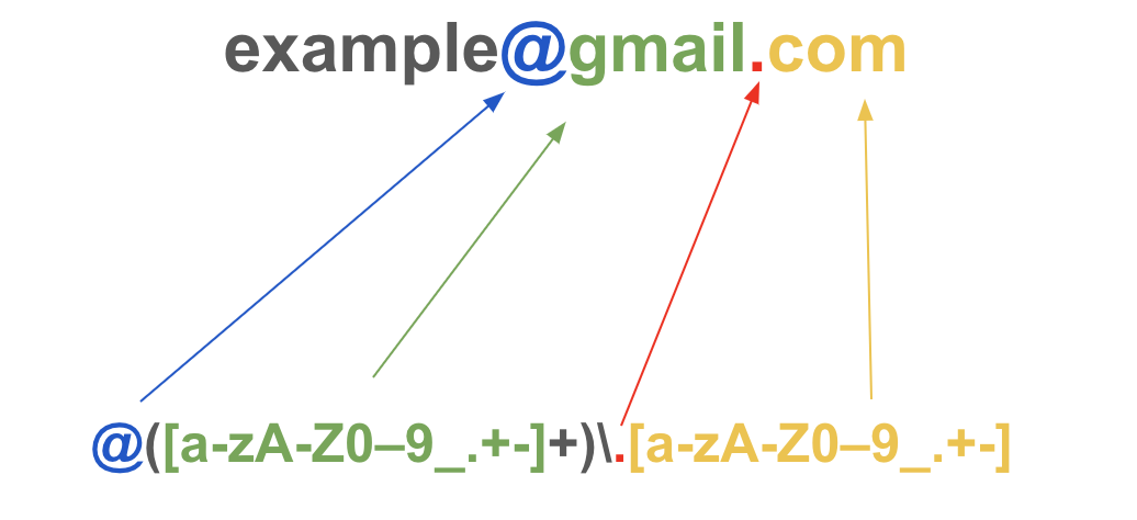 4) [\w\-\.]+ => \w(영문자, 언더스코어), 하이픈, 쩜 으로 이루어진 문자열이 한개 이상(+) 있다.