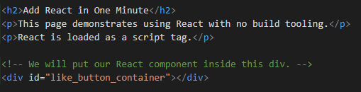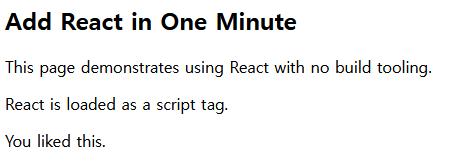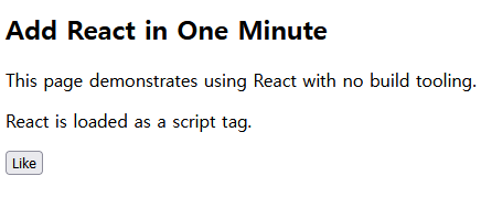 이 코드는 <div> 태그를 찾아 해당 태그에 React 앱을 만들어 주고, "Like" 버튼 컴포넌트를 추가해준다.