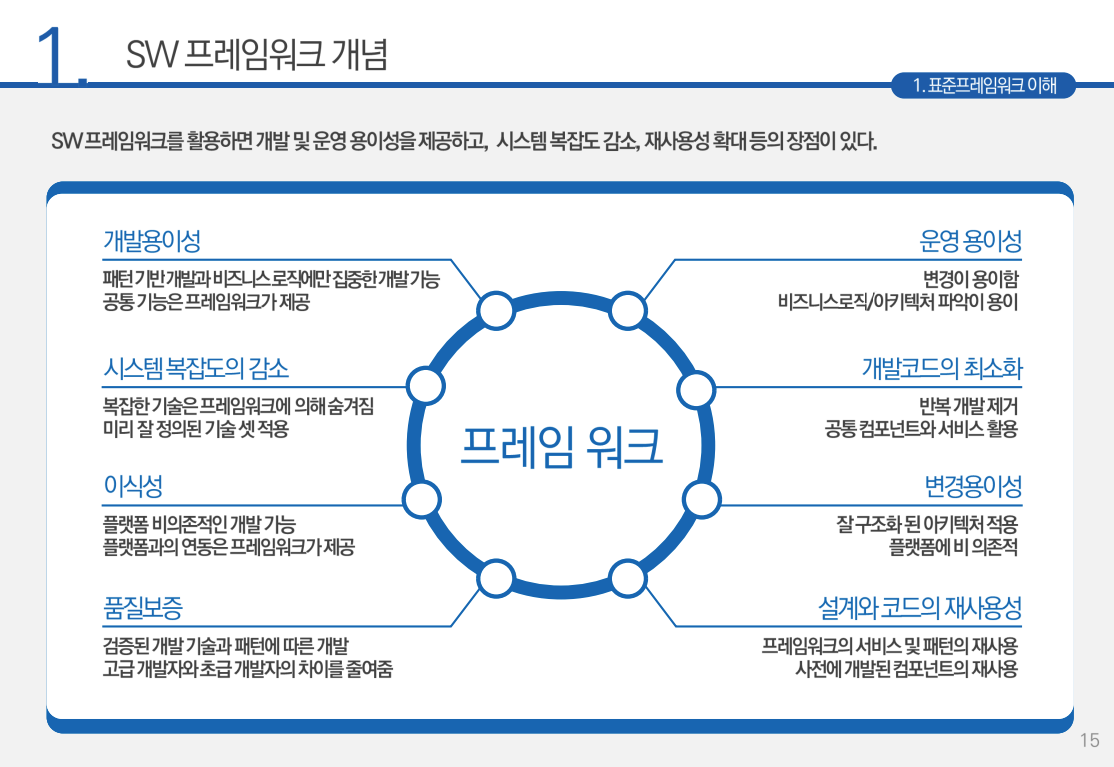 프레임워크는 프레임워크만으로 프로그램이 동작하는 것이 아니라 뼈대를 제공하고 그 위에 개발자가 코드를 올려 동작하게끔 하는 구조로 되어 있어 개발자들이 로직에 좀 더 집중할 수 있으며, 객체 지향 개발에 있어 시스템을 일관적으로 관리할 수 있게 도와준다.
