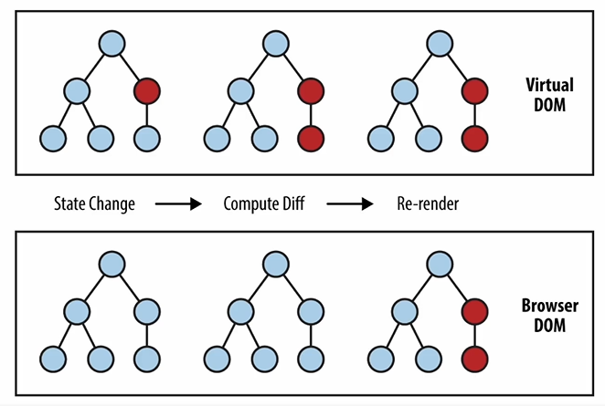 웹페이지와 실제 DOM 사이의 중간 매개체 역할을 하는 가상 돔(Virtual DOM)을 활용해 업데이트해야 할 최소한의 부분만 검색하고 업데이트 및 렌더링하기 때문에 작동 성능과 속도 및 높은 사용자 경험을 보장해준다.